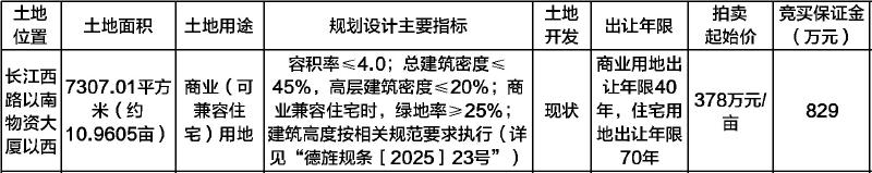 德阳市长江西路以南物资大厦以西国有建设用地使用权拍卖出让公告