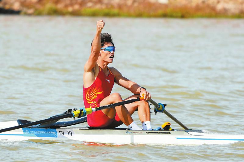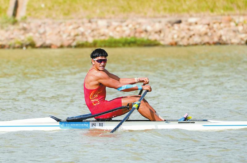 以4分59秒39的成绩率先冲线获得金牌;在男子单人双桨决赛中,四川选手邓志玮以4分59秒17的成绩获得冠军。