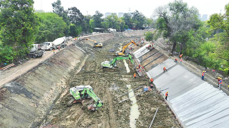 何晓强表示,在此次整治的20公里渠道中,有17公里处于成都绕城高速以内,其中约7公里处于三环以内。为了减少施工噪音、道路管制等对居民的影响,施工方在多个工段采取“三班倒”模式,力争在白天完成更多工作量。