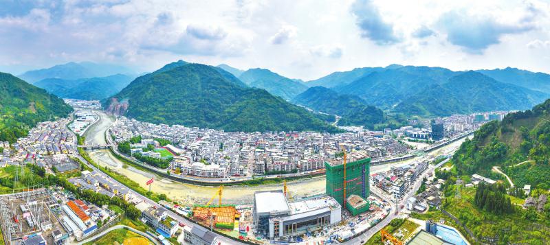 2022年以来,面对潜藏的地质灾害风险,宝兴县并未选择被动避险,而是以“一年开局起步、三年基本完成、五年完善提升”为目标,启动了一项系统性工程——随着县政府驻地由穆坪镇迁至灵关镇,人口、资源与公共服务开始重组与升级:452套安置住房及配套设施陆续建成;7500平方米的全民健身中心与近6万平方米的保障性租赁住房也相继落地,共同构筑起一个以灵关镇为核心,融合安居、教育、医疗、体育等功能的城镇新区。
