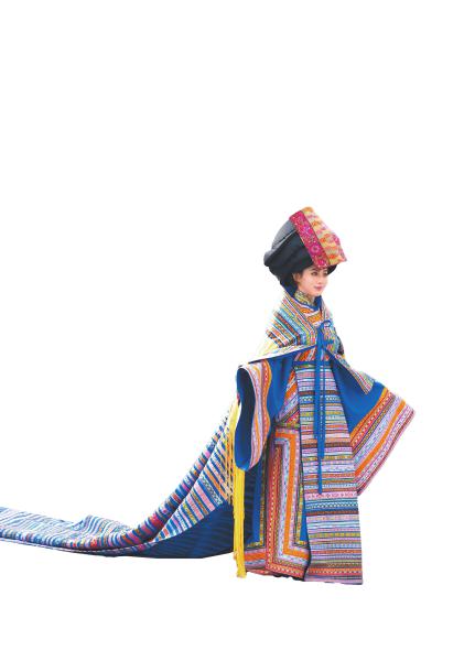 11月20日,在汶川县2025羌年庆祝活动现场,“尔玛的嫁衣”时装秀上演。这款服装在遵循羌族古老传统的基础上又加以创新。