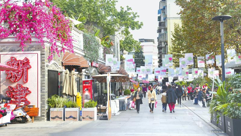 “以前这里车挤车、人挤人,秩序比较混乱,如今花草绿植郁郁葱葱,商家摊贩井然有序,街区风貌焕然一新。”附近居民王先生表示。