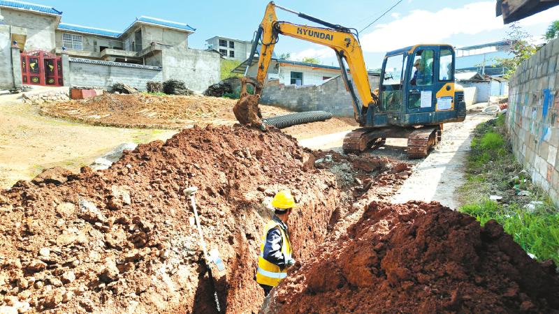 近期,在盐源县盐井街道鱼脊梁村,随着挖掘机的作业,一道1.6米深、0.6米宽的沟渠逐渐呈现,即将安埋管道。