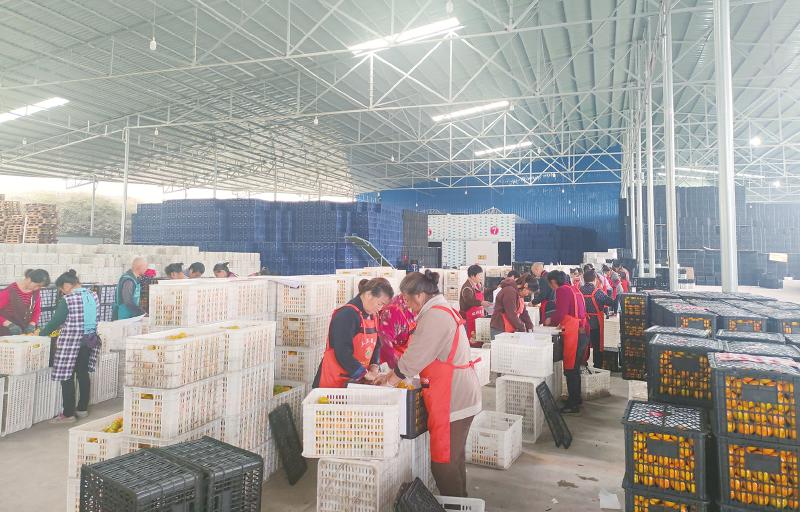在资阳三三果业有限公司,不时有悬挂各地牌照的货车进出。初加工车间里一派忙碌景象,工人们忙着择果、装箱、装车……