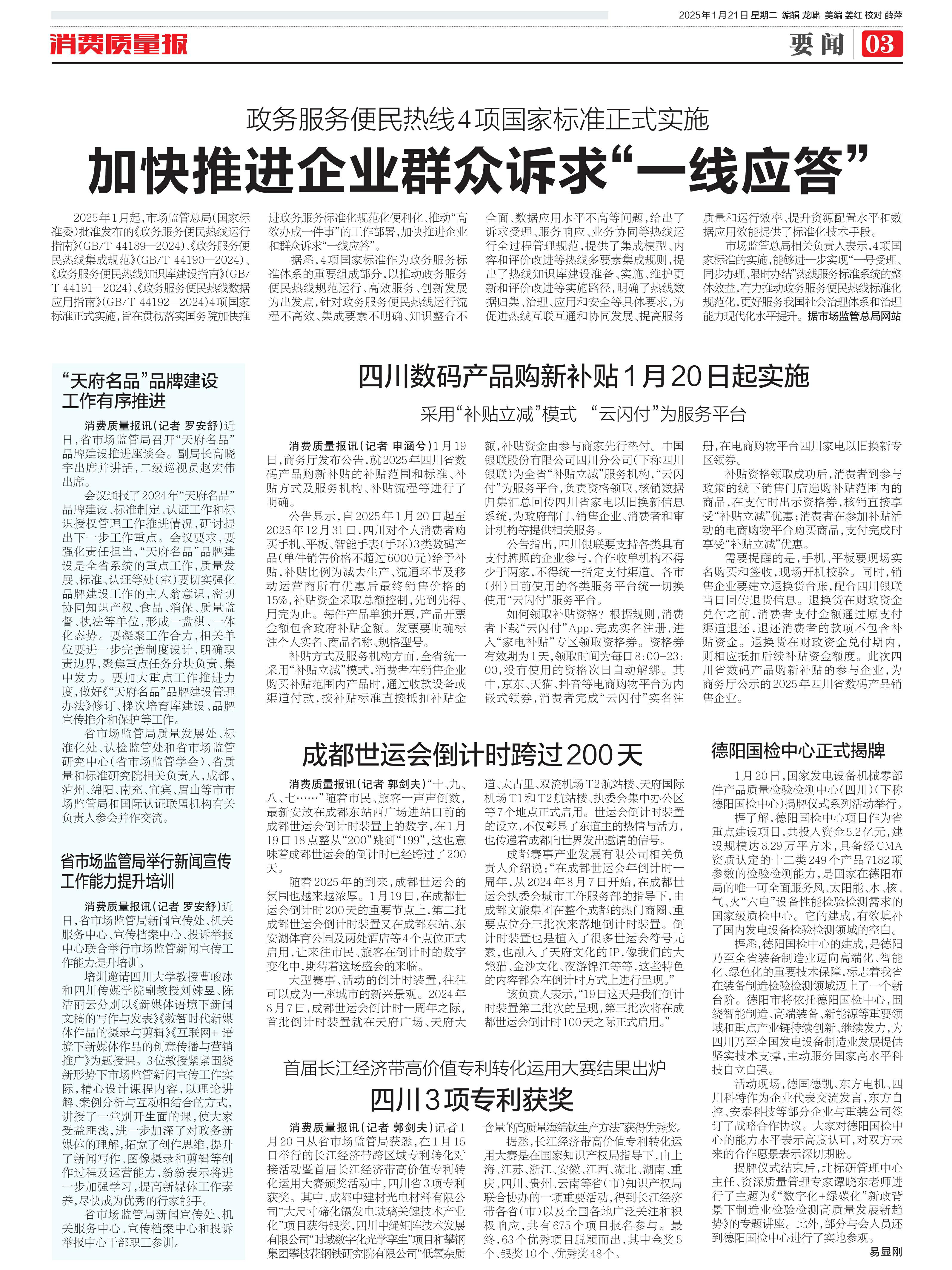 消费质量报讯(记者 郭剑夫)记者1月20日从省市场监管局获悉,在1月15日举行的长江经济带跨区域专利转化对接活动暨首届长江经济带高价值专利转化运用大赛颁奖活动中,四川省3项专利获奖。其中,成都中建材光电材料有限公司“大尺寸碲化镉发电玻璃关键技术产业化”项目获得银奖,四川中绳矩阵技术发展有限公司“时域数字化光学孪生”项目和攀钢集团攀枝花钢铁研究院有限公司“低氧杂质含量的高质量海绵钛生产方法”获得优秀奖。