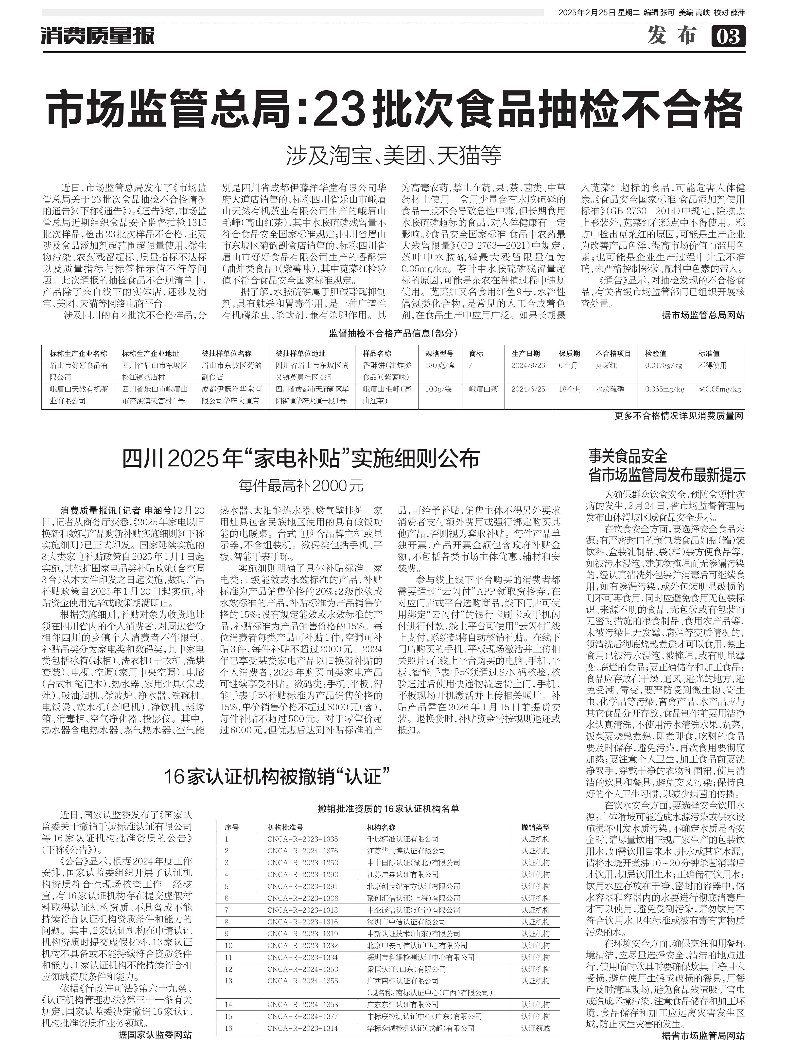 ·市场监管总局:23批次食品抽检不合格