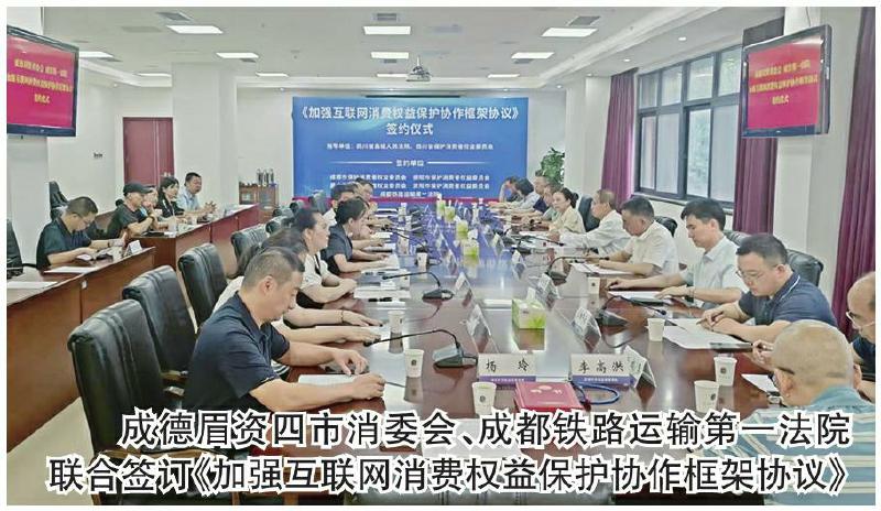 去年7月,成德眉资四市消委会、成都铁路运输第一法院联合签订《加强互联网消费权益保护协作框架协议》,将在建立健全互联网消费纠纷的诉调对接机制、加强网络消费纠纷调解资源共享、联合开展互联网消费普法宣传教育活动等五个方面进行深入合作,进一步加强互联网消费权益保护。