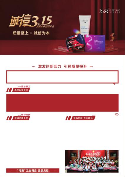 诚信是建立良好品牌口碑的重要基石,也是企业发展的根本。美心注重品牌塑造,“巧束”品牌旗下现主要包括卫生巾、私护抑菌凝胶、私护清洁啫喱等产品。