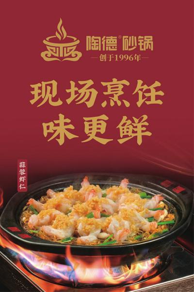 发轫于遂宁市的射洪,那里是唐代文学家、著名诗人陈子昂的故乡。陶德砂锅一直在为弘扬绿色健康的中华砂锅美食文化而不懈努力。从创业初30平方米、四张小方桌开始,经过28年的锤炼和坚守,形成一菜一锅、一锅一品的绝妙砂锅餐饮文化。同时,菜品上不仅烹制出了适合中青年的麻辣鲜香类、干锅类、酸辣类,更有老少皆宜的清汤类、砂锅煲汤。畅销 20多年的青豆肥肠,一直坚持去油,选用海报3300米以上的高原豌豆,软糯可口。人气菜品蒜蓉虾仁,现场烹饪味更鲜。粉丝包裹着虾仁在沙漏漏完之前食用,口感更佳,仪式感十足。菜品鲫鱼水饺,一直坚持手工包制的水饺搭配鲜活鲫鱼熬汤。所有热菜都是采用砂锅煨制而成,以保证上菜后菜品的温度和沸腾度。