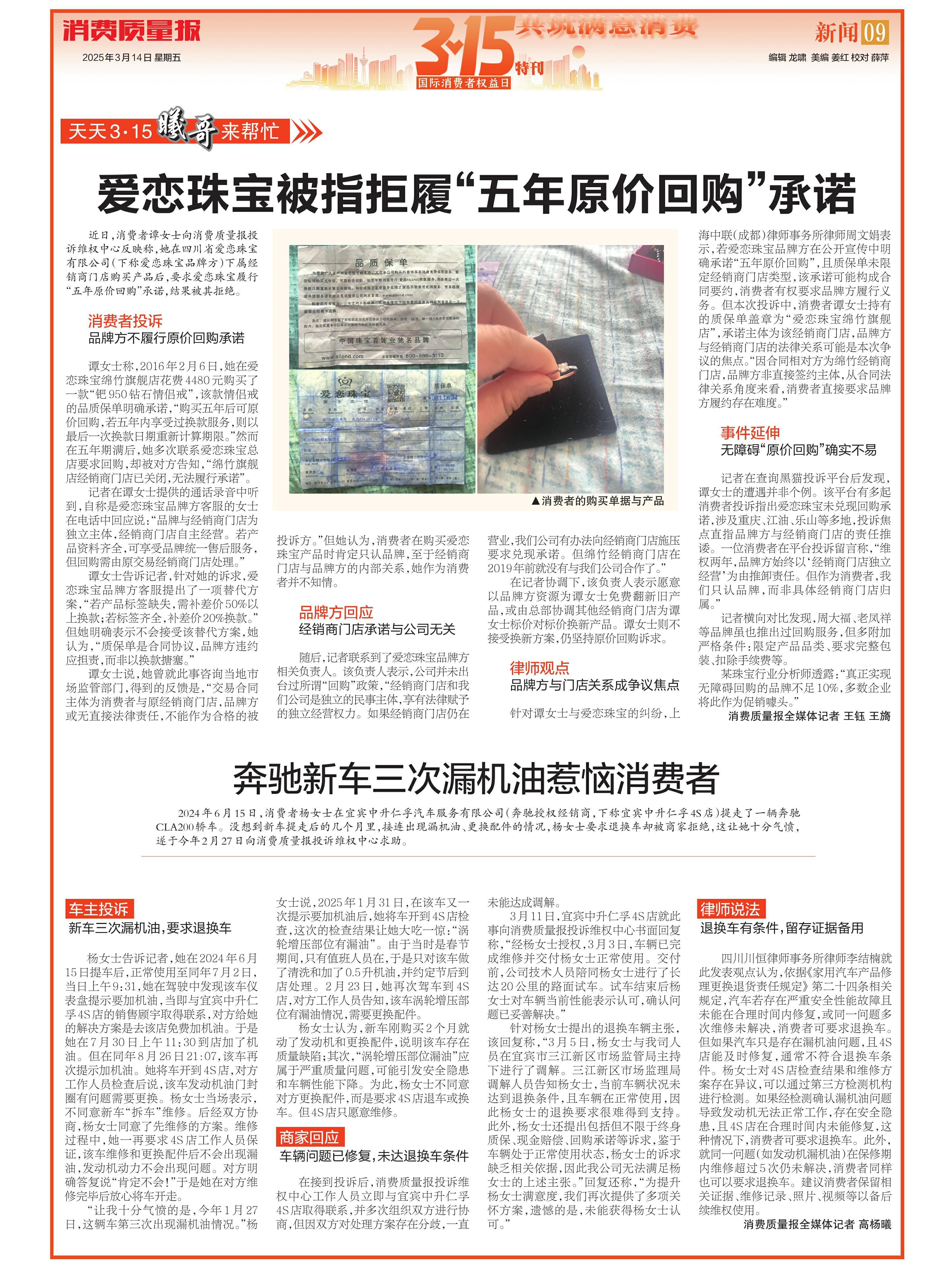 ·爱恋珠宝被指拒履“五年原价回购”承诺
