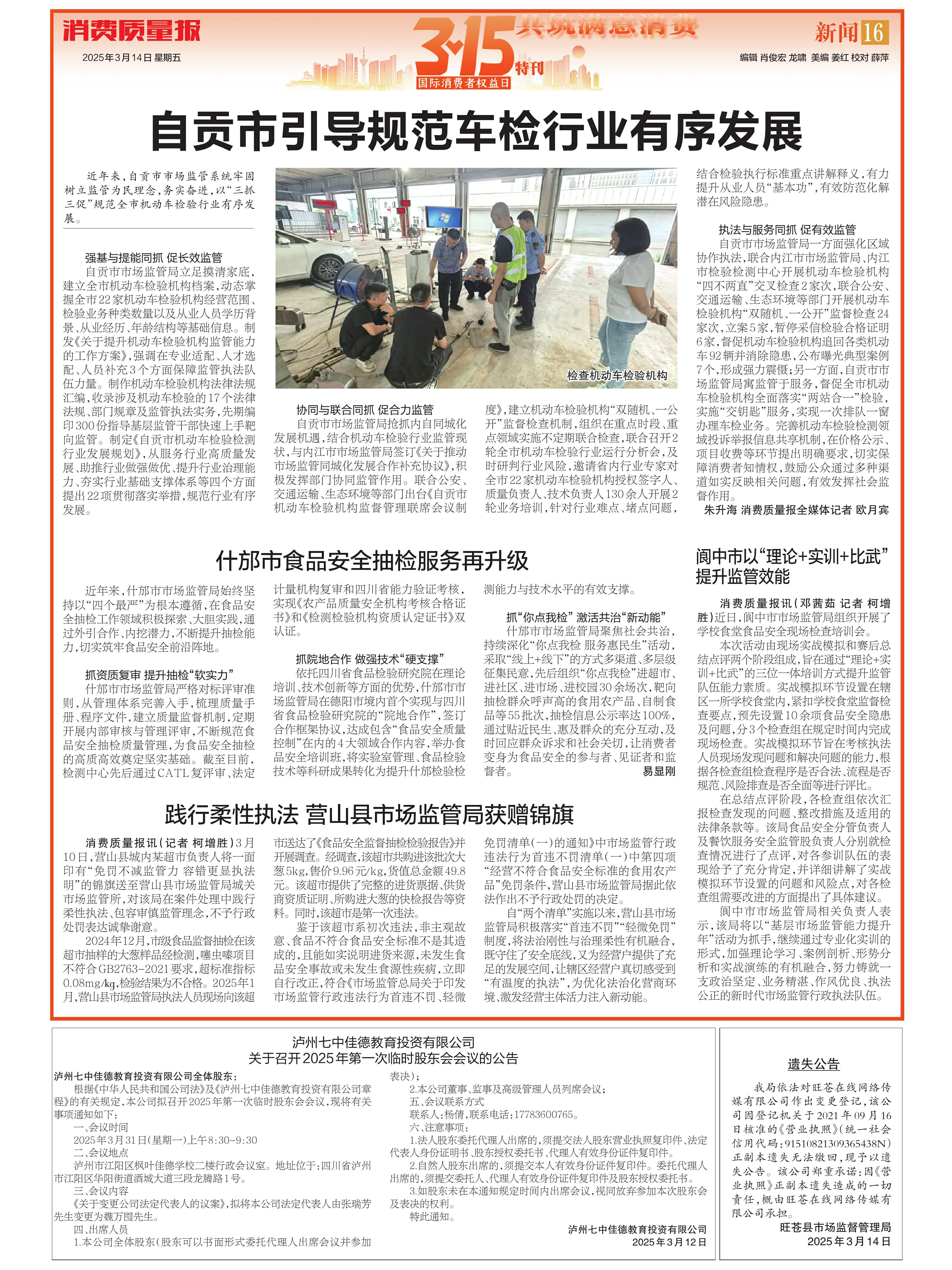 ·泸州七中佳德教育投资有限公司关于召开 2025年第一次临时股东会会议的公告