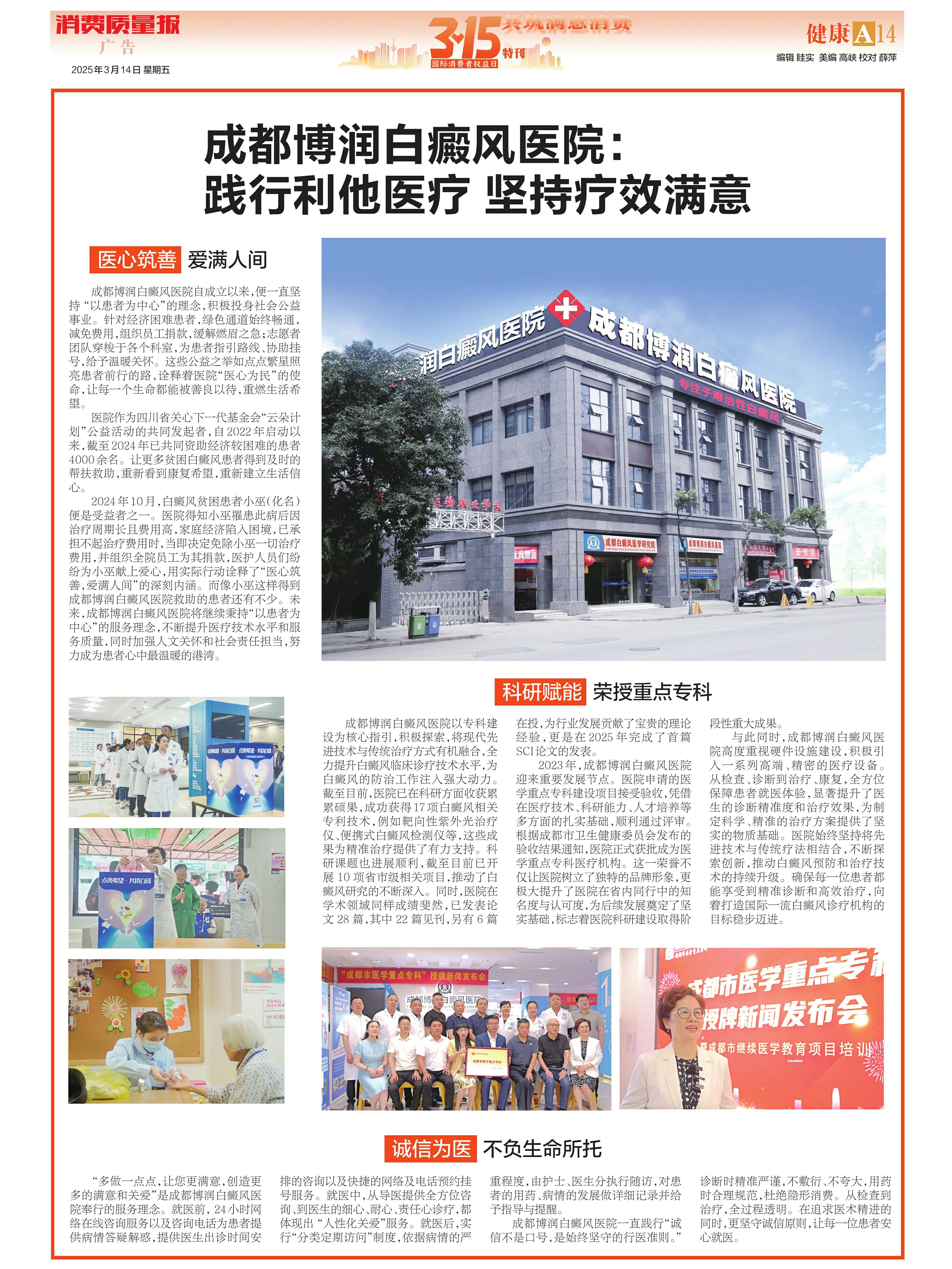 ·成都博润白癜风医院:践行利他医疗 坚持疗效满意