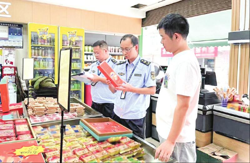 夏日的农贸市场像个蒸笼,汗珠子顺着徐菲的额头滚下来,后背的制服洇湿一大片,他一边擦汗,一边俯身凑近一个装有散货的箩筐,捻起几粒仔细瞧,又凑近鼻子闻了闻,眉头微微蹙起“老李,这花椒味儿不对啊,有点哈喇了,天热,得勤看着点,不能卖了。”督促整改之后,徐菲又赶往下一家商铺。