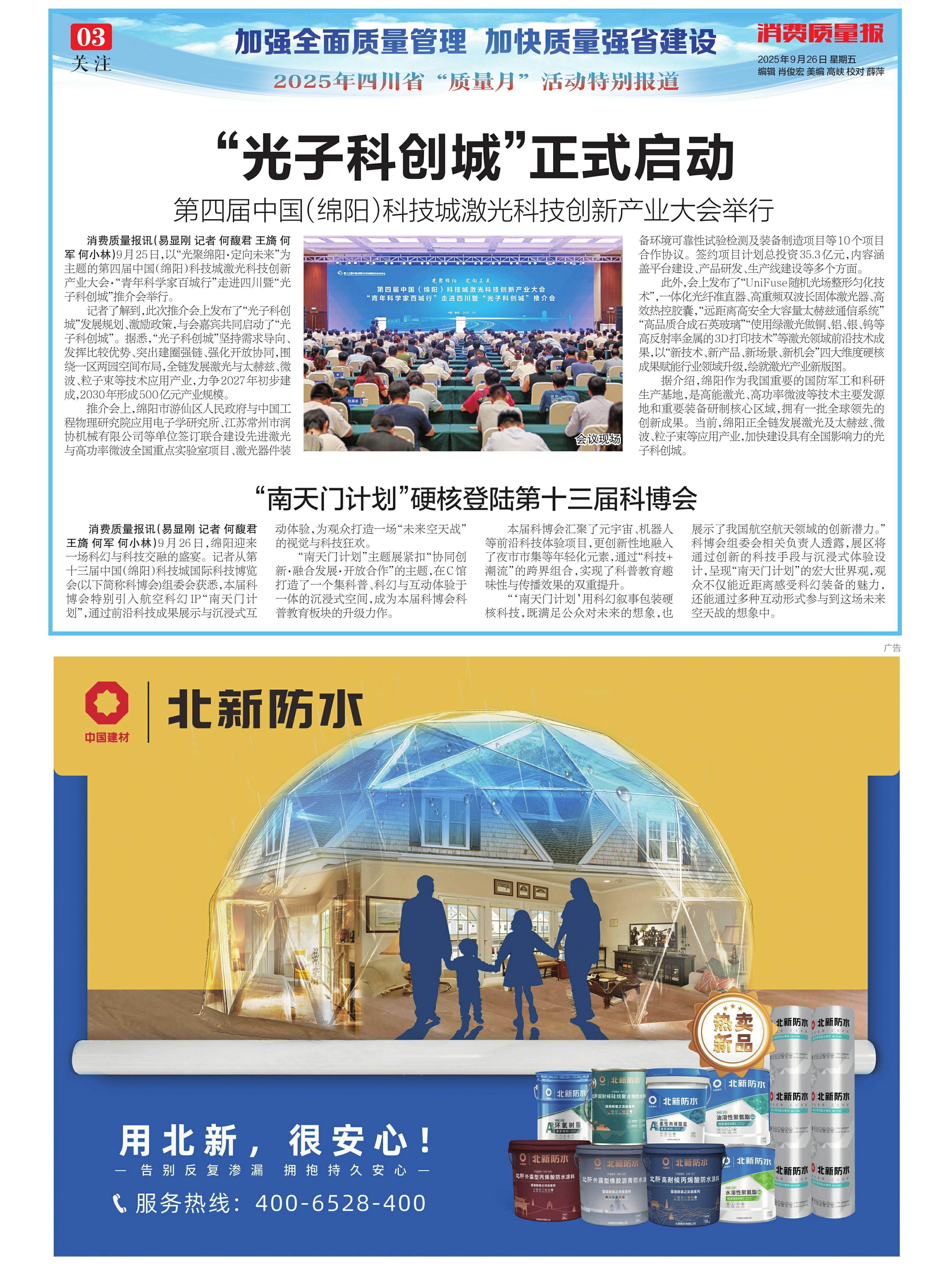 消费质量报讯(易显刚记者何馥君王旖何军何小林)9月25日,以“光聚绵阳·定向未来”为主题的第四届中国(绵阳)科技城激光科技创新产业大会·“青年科学家百城行”走进四川暨“光子科创城”推介会举行。