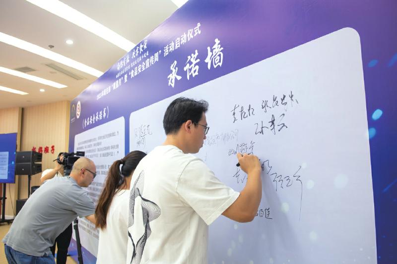 会议通报了“质量月”暨“食品安全宣传周”的总体部署,明确了“加强全面质量管理,促进质量强市建设”“尚德守法 共享食安”为活动主题,安排开展各类活动90余项。凸酒酒业有限公司代表食品企业现场宣读《食品安全承诺书》,参会食品经营企业代表集体在“尚德守法 共享食安”承诺墙上签名,公开承诺落实食品安全主体责任;美团相关负责人分享了“网络餐饮阳光厨房”的创新实践,介绍了经费补贴及相关政策,并捐赠了一批食安封签,鼓励外卖餐饮店积极参与构建“政府监管+平台自治+社会监督”多元共治机制,持续提升外卖餐饮安全水平。