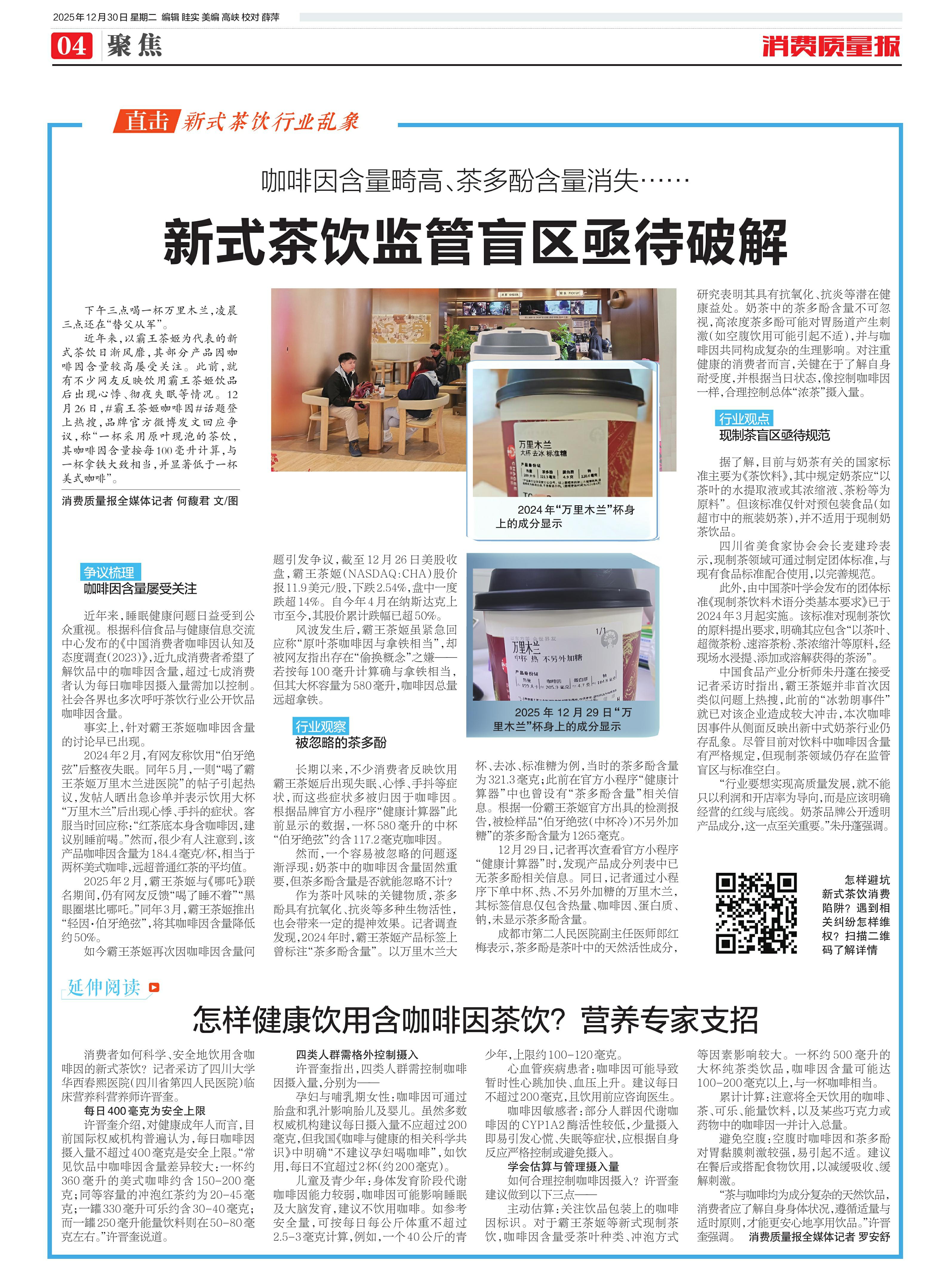 四川省美食家协会会长麦建玲表示,现制茶领域可通过制定团体标准,与现有食品标准配合使用,以完善规范。
